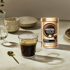 Coloque uma colher de chá 2g de NESCAFÉ GOLD Espresso Intenso em uma xícara.