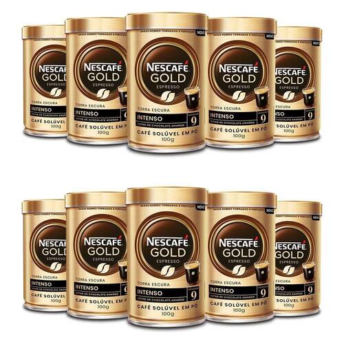 Café Solúvel NESCAFÉ GOLD Espresso Intenso Kit 10 Latas de 100g Uma Experiência Sofisticada de Café Solúvel