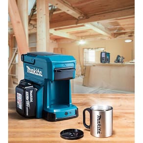 Compatível com baterias 12V CXT ou 18V LXT. Preparo do café com sachê ou pó. Fácil limpeza e transporte. Desligamento automático quando não houver água no reservatório.