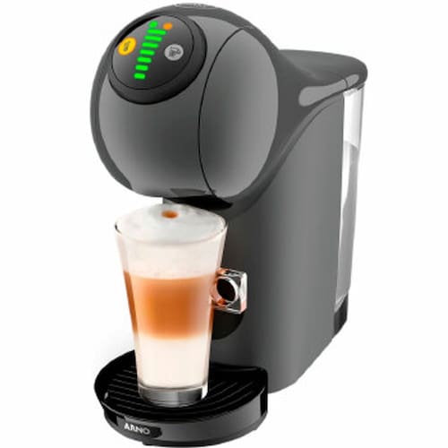 ........... Cor: GRAFITE - Voltagem: 110 VOLTS\nA NESCAFÉ® Dolce Gusto® Genio S Grafite da Arno é uma máquina MULTI-BEBIDAS que prepara mais de 30 tipos de bebidas em cápsulas com inovações a cada ano. Você pode preparar um cremoso café Espresso, um Chococcino quentinho ou até um chá gelado na sua casa com passos simples e de forma super rápida. A NESCAFÉ® Dolce Gusto® Geno da Arno é ideal para quem deseja uma máquina automática com bastante precisão e resultados quentes ou gelados sempre muito saborosos. Além das funções tradicionais das máquinas automáticas NESCAFÉ® Dolce Gusto®, a Genio S possui funcionalidades inovadoras para tornar a sua experiência ainda mais completa e agradável: Anel de controle: ajuste o tamanho da bebida de forma fácil e simplificada. Controle de temperatura: com 4 ajustes que vão de ambiente até muito quente personalizar sua bebida e agradar a todos os diferentes gostos. Espresso boost: experiência ainda mais intensa que pré umedece seu espresso antes do preparo para café mais concentrado. Função limpeza: Avisa a hora de limpar vestígios de café, leite e chocolate das partes internas garantindo que sua máquina fique sempre em excelentes condições e dure por muito mais tempo. Função XL: prepare um extra longo com +30ml de bebida com um só clique. A Genio prepara desde um verdadeiro Espresso, Cappuccino e várias outras bebidas em questão de segundos. Para isso, basta selecionar o nível de água indicado na cápsula, a temperatura da bebida e ela para automaticamente quando sua bebida estiver pronta. A NESCAFÉ® Dolce Gusto® Genio S possui reservatório de água com grande capacidade e função ECO. Assim como todas as máquinas NESCAFÉ® Dolce Gusto® da Arno, possui 15 BAR de pressão que garante a melhor qualidade, aroma e cremosidade para todas as bebidas, permitindo resultado semelhante ao obtido pelos barristas profissionais. Com design arrojado que combina com todos os tipos de ambiente de forma elegante e moderna, essa máquina faz sucesso em qualquer lugar. Escolha seu sabor preferido e viva a experiência de NESCAFÉ® Dolce Gusto®! Potência: 1350W Consumo KW: 43.5 kW/h*/mês Garantia: 12 meses por defeitos de fabricação Tipo De Material: Plástico Comprimento Do Cabo: 50cm Origem: Importado Altura: 27,20 cm Largura: 11 cm Comprimento: 27,1cm Peso: 1,90 kg
