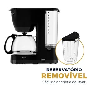 Entre seus principais recursos, destacam-se o filtro permanente removível, que dispensa o uso de filtros de papel, e o sistema corta-pingos, que permite a retirada da jarra durante o preparo sem causar vazamentos. A placa de aquecimento mantém o café na temperatura ideal por mais tempo, garantindo sabor e comodidade mesmo após o preparo. A potência de 800W contribui para um desempenho rápido e eficiente.