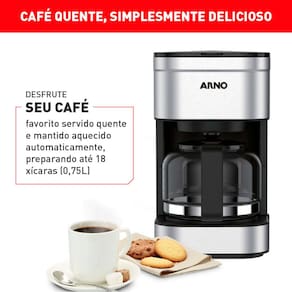 Cafeteira Elétrica Arno Preferita CFPF Inox 220v Com design moderno, Arno Preferita permite que você faça um delicioso café quente. Possui sistema corta pingos, função manter aquecido e filtro de café permanente. Café quente, simplesmente delicioso Serve até 18 xícaras de café, dada sua capacidade de 0,75L Café sempre quentinho, uma vez que possui placa de aquecimento que funciona enquanto a máquina estiver ligada na tomada Design premium e em inox Sem sujeira no seu equipamento, uma vez que possui sistema corta pingos Acompanha filtro permanente e colher medidora Jarra de Vidro