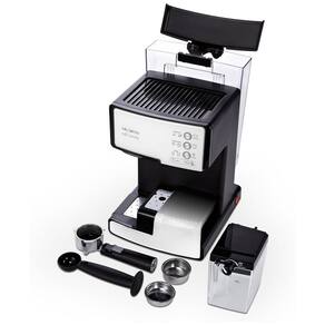Cafeteira Elétrica Barista 3 em 1 Semiautomática Mr. Coffee com sistema de bomba de 15 bar, espumador de leite automático, painel de controle de um toque e reservatórios removíveis de água e leite.Pressão