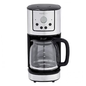 Cafeteira digital com placa de aquecimento prepara até 12 xícaras de café por vez Inclui uma cafeteira de 12 xícaras em caixa de aço inoxidável com uma jarra anti pingos A cesta de filtro removível e reutilizável pode ser facilmente levantada para esvaziamento e limpeza não há necessidade de filtros de papel O design programável com relógio digital permite configurar a cafeteira para preparo automático pela manhã Janela de água visível para medição precisa e prevenção de transbordamento A função Brew Pause pausa o ciclo de preparo para permitir uma xícara rápida no meio do preparo A proteção contra superaquecimento e fervura desliga a unidade automaticamente se o tanque estiver vazio ou a temperatura exceder os níveis normais O tamanho compacto economiza espaço na bancada ideal para casa, dormitório, escritório ou área de trabalho