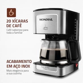 A Cafeteira Elétrica Dolce Arome C-43-20X-SI é indispensável para quem ama um bom café. Capacidade para fazer até 20 xícaras de café, possui filtro permanente com porta-filtro removível que dispensa o uso de filtro de papel, jarra de vidro e sistema corta-pingos para você servir o café durante o preparo. Além disso, possui design moderno e elegante, com acabamento em aço inox. Aproveite a qualidade que só a Mondial tem a oferecer!