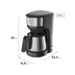Resumo Comece o seu dia com praticidade ao preparar seu delicioso café com a Cafeteira Elétrica Electrolux em Aço Inox 30 xícaras Efficient ECM22. O design em Aço Inoxidável Escovado oferece sofisticação e durabilidade para sua cozinha. A Jarra em Aço Inoxidável garante maior resistência, performance e facilidade de limpeza. Além disso, conta com um Design que combina com a sua cozinha. Com capacidade para 1,2L, a jarra é compacta para sua cozinha e tem ótima medida para o dia a dia, preparando até 30 xícaras de cafés de 40ml, ideal para toda a família. A cafeteira possui o Filtro Removível e Permanente, que é lavável e reduz o uso de até 730 filtros de papel em um ano, trazendo economia e sustentabilidade para sua rotina, assim, você usa o filtro de papel somente se desejar. Graças à Função Manter Aquecido na base, seu café é conservado quente e delicioso por mais tempo, mesmo depois de pronto, enquanto a cafeteira estiver ligada. Além disso, a Cafeteira Elétrica Electrolux em Aço Inox ECM22 possui o Sistema Corta Pingos, que te permite servir o café a qualquer momento durante a preparação, sem se preocupar com pingos na base de aquecimento. E a cafeteira também conta com a placa antiaderente, que garante mais facilidade na limpeza. Assim, você garante uma rotina com menos esforço. Jarra em Aço Inoxidável: