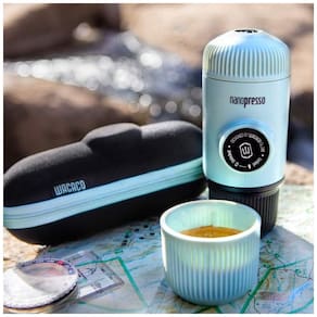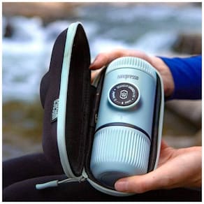 Cafeteira portátil, sem necessidade de bateria ou eletricidade, sistema de bombeamento manual, pressão de 261 PSI, tanque de água com capacidade de 80ml, design ergonômico e leve, ideal para viagens.Moedor de café integrado