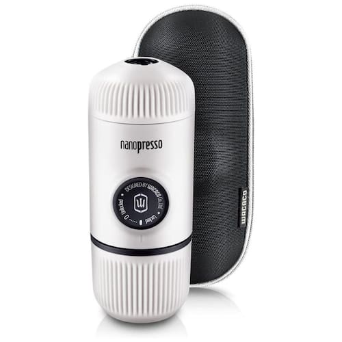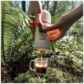 Cafeteira expresso portátil, sem necessidade de bateria ou eletricidade, com pressão de até 261 PSI, tanque de água com capacidade de 80ml, design ergonômico e leve, ideal para viagens.Moedor de café integrado