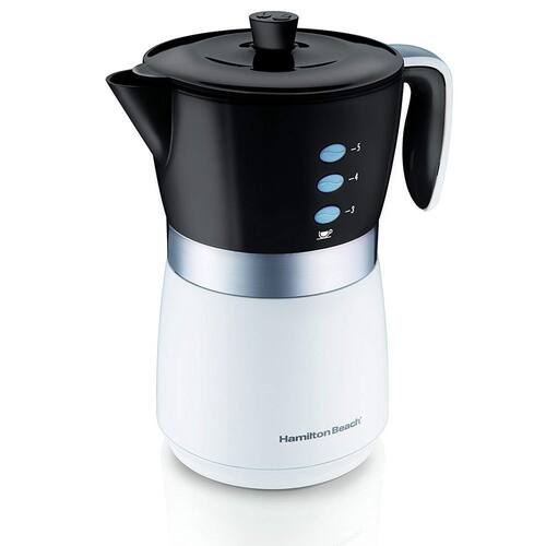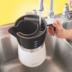 A Cafeteira Elétrica Hamilton Beach permite o preparo do café de forma prática e rápida, sem jarra de vidro para quebrar. O produto, que tem capacidade para até 14 xícaras da bebida, conta com sistema de preparo encapsulado que mantém o café aquecido, além de cesto que dispensa o uso de filtros de papel. Informações técnicas Marca: Hamilton Beach Modelo: 43707BZ127 Voltagem: 127V Inmetro: 00391301/2016 Capacidade: 700ml Dimensões do produto: 26,5 x 22,8 x 15 cm ; 800 g Cor: Preta Garantia: 36 meses Tipo de Refil: Pó, moído Potência: 565W Quantidade de xícaras: Até 14 xícaras Bandeja removível: Sim Tipo de filtro: Permanente Água quente: Não Display: Sim Indicador de nível de água: Sim Luz indicadora: Sim Sistema corta pingos: Sim Conteúdo da Embalagem: 01 Cafeteira 01 Tampa 01 Filtro Permanente 01 Manual Sobre a marca Sempre comprometida com a completa satisfação do cliente e com a inovação, a Hamilton Beach faz parte das mais diversas famílias há mais de 100 anos, trazendo novos produtos, recursos, estilos e cores. A marca número 1 na categoria de eletroportáteis nos Estados Unidos chegou no mercado brasileiro oferecendo 3 anos de garantia e apresentando batedeiras, liquidificadores, cafeteiras, ferros de passar e vários outros produtos para inspirar todo mundo a cozinhar e se questionar: Por que ninguém pensou nisso antes