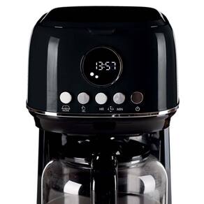 • Programe com antecedência (até 24h) a hora em que o seu café ficará pronto; • Potência: 900W; • Capacidade: Até 15 xícaras; • Display LCD: Sim; • Base de aquecimento: Sim; • Filtros laváveis: Sim; • Nível de água visível do tanque: Sim.
