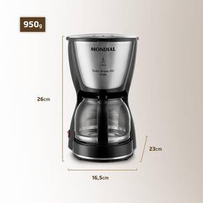 A Cafeteira Elétrica Dolce Arome Black prepara até 18 xícaras de café. Com jarra de vidro fácil de lavar, sistema corta-pingos e base com aquecimento para café quente a qualquer hora. Ela ainda indica quantas xícaras serão feitas. Sua jarra de vidro não fica com resíduos e odores, podendo ser levada à mesa. Com seu sistema corta-pingos, você pode retirar a jarra para servir o café mesmo durante o preparo. Já a base com aquecimento conserva a temperatura, para você ter café quentinho por mais tempo sem alterar o sabor. Já a tampa basculante traz mais facilidade na hora de colocar a água e o pó de café. Esta cafeteira tem ainda um indicador de nível de água, mostrando quantas xícaras serão feitas, para você passar o café na medida certa. A Cafeteira Elétrica Dolce Arome Black foi desenvolvida para uso doméstico, residencial. Tudo isso com 1 ano de garantia Mondial.