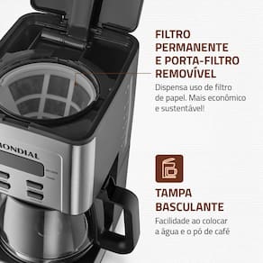 - ECOLOGICAMENTE CORRETA: O filtro permanente com porta-filtro removível dispensa a utilização do filtro de papel e proporciona mais sustentabilidade.