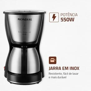 A Cafeteira Elétrica Dolce Arome C-34-JI-15X pode preparar até 15 xícaras de café com muita praticidade. Possui filtro permanente e porta-filtro removível que proporcionam mais sustentabilidade ao meio ambiente. Moderna, a jarra em inox é mais durável, fácil de lavar e pode ser levada à mesa. Conta com sistema corta-pingos e base com aquecimento para conservar a temperatura do café por mais tempo.