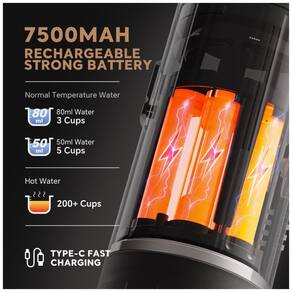 A máquina de café expresso portátil BENFUCHEN é a escolha ideal para quem valoriza praticidade e qualidade ao preparar um café. Com um sistema de aquecimento rápido, você pode adicionar água quente ou fria, pressionar um botão e desfrutar de um café aromático instantaneamente. A potente bateria da máquina carrega em apenas 2 horas através do cabo USB incluído e é capaz de preparar até 200 xícaras com água quente, 45 xícaras com 50 ml de água em temperatura ambiente e 3 xícaras com 80 ml de água em temperatura ambiente.