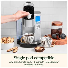 O fabricante compatível com K Cup fabrica um copo de cada vez, compatível com qualquer marca de cápsula de copo único, incluindo as cápsulas Keurig K Cup. Comprimento do cabo 81cm 5 tamanhos de bebidas 118ml 355ml, reservatório de água removível de 2,1L, filtro de água de carvão O botão de água quente permite que você aprecie café instantâneo, sopa, chá e chocolate quente O recurso de enxágue limpa instantaneamente o interior da câmara de infusão Tipo de material Plástico. Verifique o guia do usuário para obter mais esclarecimentos Totalmente programável com uma gama completa de recursos, incluindo Auto On , Off e controle de temperatura ajustável. Não limpe a bandeja coletora com produtos de limpeza, almofadas de lã de aço ou outros materiais abrasivos. O Cuisinart Premium Single Serve Brewer oferece liberdade de escolha Escolha os tamanhos de porção de 118ml, 177ml, 236ml, 295ml ou 355ml, escolha a temperatura ideal e desfrute de uma xícara de café, chá, sopa ou cacau. Este fabricante de cerveja é compatível com K Cup e também inclui um copo de filtro reutilizável HomeBarista para sua bebida favorita. A bandeja de gotejamento é puxada para acomodar canecas de viagem e o reservatório de água de 700ml elimina a necessidade de recargas frequentes Consulte o manual de instruções antes de usar. capacidade Cuisinart Premium Single Serve Brewer é uma unidade de preparação de café totalmente programável e versátil, ideal para uso pessoal e divertido, tornando a perfeita para qualquer residência. Compatível com qualquer marca de cápsula de copo único, incluindo cápsulas Keurig K Cup e equipada com a xícara de filtro reutilizável HomeBarista , esta cafeteira facilita mais do que nunca os consumidores a desfrutar de uma ampla variedade de bebidas quentes. A unidade possui cinco configurações diferentes de tamanho de xícara variando de 10 a 30 gramas e uma temperatura de infusão ajustável para garantir que as temperaturas desejadas sejam atingidas. Além do café, um botão de água quente pode ser para preparar sopa, chá, chocolate quente e muito mais, e a unidade está equipada com uma função de enxágue para facilitar a limpeza