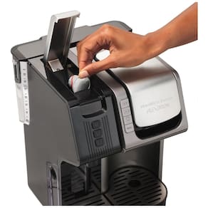 Cafeteira Elétrica Hamilton Beach FlexBrew 3 em 1, prepara café expresso, pastilhas ou moído. Prepara uma xícara rapidamente em aproximadamente 1 minuto. Possui reservatório de água removível de 1.6 Litros e bomba de expresso de pressão de 19 bar.Moedor de café integrado