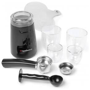 Equipado com o sistema avançado de aquecimento de termoblocos, basta clicar no botão LIGADO e apreciar o estilo italiano de café expresso, cappuccino, café com leite e muito mais em segundos. Basta adicionar grãos Tanque de água grande e destacável de 1,4L com alça conveniente para permitir recargas sem problemas. Batedor de leite e reservatório embutidos com botão de controle ajustável para aquecer e espumar o leite e desfrutar de um delicioso cappuccino e café com leite Máquina de café expresso e cappuccino da série Barista da EspressoWorks com moedor de café elétrico, acessórios Barista, copos de cappuccino de parede dupla e xícaras de café expresso. Esta poderosa máquina aprimora toda a sua experiência com café expresso, cappuccino e café com leite. A bomba de 19 barras cria o creme perfeito, e o sabor o nunca foi tão fácil. Moa seus próprios grãos de café ou café expresso com a textura perfeita, garantindo sempre a bebida mais fresca Colher e adulteração fácil de colher e medir a quantidade ideal de moagem de café expresso. 2 xícaras de café expresso de parede dupla premium e 2 copos de cappuccino de parede dupla de alta qualidade segure as xícaras sem queimar as mãos. Bandeja de aquecimento embutida. Portafilter de alta qualidade com cestas simples e duplas escolha sua quantidade e deixe a máquina fazer o resto. Cada cesto é gravado com uma linha MAX para garantir que a quantidade perfeita seja colocada. Batedor e reservatório de leite embutido com botão de controle ajustável Fácil de encher e limpar. Tanque de água destacável grande de 1.4L O suficiente para hospedar e servir Cada tanque cheio pode fazer até 19 doses de café expresso Tanque de água removível grande com alça fácil de transportar. Alça adicionada permite fácil remoção e reabasteça , limpe na pia. Batedor de leite e reservatório embutidos com botão de controle ajustável. Com apenas um toque, você pode apreciar as bebidas de café expresso em camadas perfeitas, com espuma densa, rica e duradoura em cada xícara do início ao fim. O reservatório de leite pode conter até 500ml de leite. Incluído na sua compra Moedor elétrico plug in de 120V. Porta filtro com alça de baquelite. Cestas de filtro de tiro único e duplo. Colher e adulteração 2 copos de cappuccino de parede dupla de alta qualidade 2 xícaras de café expresso de parede dupla premium 16 xícaras de café expresso de parede dupla premium 16 modelos de estêncil de arte para cappuccino. Guia de início rápido. Painel de controle. Escolha a configuração padrão ou programe sua própria quantidade perfeita de café expresso e leite. Sete botões dedicados com indicadores LED no painel de controle podem ajudá lo a preparar e criar uma lista de bebidas, básicas e personalizadas. Permite escolher uma dose única ou dupla para o seu café expresso, cappuccino ou latte macchiato. Máquina de café expresso e cappuccino com bocal embutido. 7 PC Máquina de café expresso e cappuccino all in one com batedeira a vapor e bocal embutido. Ótimo para amantes de café com leite, cappuccino e café, festas em casa, escritórios e gifting. Tempo de preparação para aquecimento 45 60 segundos. Sistema de aquecimento avançado com termobloco Steamer de leite. Espuma automática com tanque de leite removível. Espuma manual. Varinha de vapor. Capacidade do tanque de água 1.4L 1.25L. Acessórios Moedor de grãos de café, Colher, calcadeira, Portafilter, Cesta de filtro de tiro único, Cesta de filtro de tiro duplo, 2 xícaras de cappuccino, 2 xícaras de café expresso, Modelos de estêncil de arte. Duplo Cesta do filtro de injeção, 2 xícaras de café expresso em cerâmica, jarro para espuma de leite. Dimensões 21,5cm x 25,4cm x 30,5cm. A 25cm x 23cm x 29cm. Recurso de desligamento automático. Potência 1250W 1350W