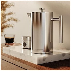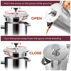 SE VOCÊ REALMENTE SE IMPORTA COM SEU CAFÉ Testamos mecanismos e filtros suficientes para fazer sua cabeça girar para ajustar e projetamos nossa impressora de maneira exclusiva com uma estrutura de filtro de três camadas para parar o sedimento, mas deixamos os deliciosos óleos de café passarem por todo o corpo, o café delicioso que fará de você um barista muito feliz. E, para compartilhar o amor pelo café, oferecemos a você uma caixa correspondente a bônus que contém grãos suficientes para dois lotes completos. 33 MAIS GROSSO, 20 MAIS PESADO, CONSTRUÍDO DURAMENTE Nossa jarra em aço inoxidável de dupla camada, classe 18, 304, de capacidade profissional, de enorme capacidade, manterá seu café quente por 60 minutos mais que os modelos de aço e vidro mais finos. E é à prova de queda, à prova de ferrugem e provavelmente à prova de balas seja legal. MULTI USO Além de usar a prensa francesa como cafeteira, também é o melhor aparelho para fazer chá, café com óleo mct, chocolate quente, fermentação fria, leite com espuma, leite com amêndoa, leite de caju, infusões de frutas e plantas e ervas. bebidas à medida que sela seus sabores e aromas. Perfeito para aquecimentos domésticos, casamentos, aniversários, feriados e todos os amantes de café , chá, entusiastas de bricolage e amantes de comida saudável Duas telas de aço inoxidável de bônus e o contêiner de viagem correspondente são incluídos