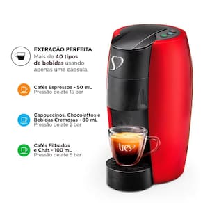 Garanta extrações silenciosas e preparos automáticos das suas bebidas favoritas com a Cafeteira TRES Lov de Espressos e Multibebidas. Com seu sistema de multipressão, é possível desfrutar de deliciosos cafés espressos, cafés filtrados, cappuccinos, café com leite e chás, com apenas um toque no botão.