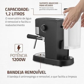 Potência - 1200W: Extrai um café saboroso, aromático e cremoso em apenas 18 segundos.