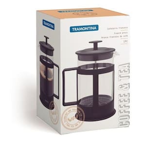 Com a cafeteira francesa Tramontina em vidro e polipropileno preto 1 litro você irá garantir os melhores cafés para seu dia a dia. Ela lhe garante 100% do aroma e do sabor do café, que é preparo de maneira muito prática e fácil. Seu tamanho é compacto e permite que você a leve para onde precisar, garantindo um café delicioso e diferenciado onde quer que você esteja A Cafeteira Francesa ainda é um dos métodos mais populares de preparo do café expresso. A versatilidade da Cafeteira Francesa é uma vantagem. É fácil de transportar e dispensa o uso de energia elétrica, o que possibilita o preparo do expresso em qualquer lugar - nas férias, num piquenique ou até num acampamento. Capacidade: 1 L. Serve 12 xícaras 80ml Material: recipiente de vidro, polipropileno, filtro de aço inox.