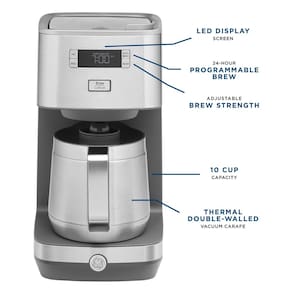 SimGE Cafeteira de gotejamento com temporizador | A jarra térmica de 10 xícaras mantém o café quente por 2 horas | Força de fermentação ajustável | Chuveiro largo para o máximo sabor | Essenciais de