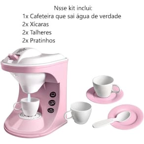 Cafeteira de Brinquedo Infantil que Solta Água com Xícaras e Talheres Le Chef UsualA Cafeteira de Brinquedo Infantil Le Chef da Usual é perfeita para deixar a brincadeira de faz de conta ainda mais divertida e realista. Com um design encantador, ela solta água de verdade, simulando o preparo do café e proporcionando uma experiência interativa para as crianças. O kit acompanha xícaras e talheres, permitindo montar uma mini cozinha completa. Feita com material resistente e seguro, é fácil de manusear e ideal para estimular a imaginação, criatividade e coordenação motora durante as brincadeiras. Uma ótima opção para presentear e incentivar o brincar educativo.Especificações:Fabricante: Usual BrinquedosReferencia: 743Modelo: Kit Cafeteira com Acessórios Le ChefComposição: Polipropileno (pp)Indicado para crianças maiores de 3 anosINMETRO: Compulsório 006566/2019Item Incluso:1x Cafeteira2x Talheres2x Pratos2x Xícaras