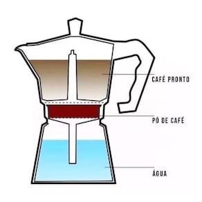 Como Funciona: Na cafeteira italiana, o café é preparado de forma simples e eficiente. A água é aquecida na base, gerando vapor que sobe pelo funil com o pó de café, resultando em um café pronto e sem resíduos no compartimento superior. Depois, basta servir e aproveitar.
