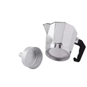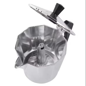 Cafeteira Italiana Café Expresso - Capacidade para 6 Xícaras (300ml)Prepare seu café de forma simples e eficaz com a cafeteira italiana, conhecida por seu método de preparação tradicional e delicioso.Com capacidade para até 6 xícaras (aproximadamente 50ml cada), você terá café expresso na medida certa.Processo de Preparação:A água ferve na base da cafeteira.Em seguida, ela passa pelo pó de café que está no funil.O café pronto sobe para o recolhedor, pronto para ser servido, livre de resíduos.Características:Válvula de segurança integrada.Não requer filtro de papel ou tecido.Prática de usar e fácil de limpar.Fabricada em alumínio grosso e resistente.Jarra equipada com difusor.Base com filtro e funil incluídos.Especificações:Capacidade: 300 mlRende até 6 xícaras de café (aproximadamente 50 ml por xícara)Dimensões: Altura da cafeteira - 15 cmIdeal para quem busca qualidade e praticidade na hora de preparar um autêntico café expresso!