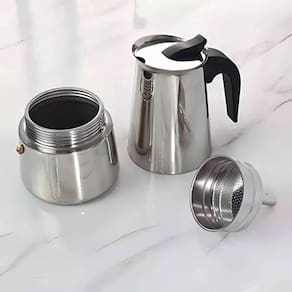 Cafeteira Italiana Aço Inox 200ml 4 Xícaras Dispensa Filtro Cafeteira Italiana Aço Inox 200ml 4 Xícaras Dispensa Filtro ===================================== Sua construção em aço inox com acabamento brilhante oferece durabilidade e facilidade na limpeza, enquanto a alça de baquelite permite manuseio seguro sem risco de queimaduras. A segurança é garantida pela válvula , e é essencial que a água não ultrapasse o limite indicado. Essa cafeteira é compacta, estável e ideal para uso doméstico ou em pequenos grupos. Indica-se fogo baixo a médio para evitar que o café queime e prejudique o sabor. Após uso, recomenda-se desmontar e limpar com água morna e detergente neutro, evitando esponjas abrasivas ===================================== Contém: 01 Cafeteira Especificação: - Material: Aço Inox - Medida: 16,5cm x 8,5cm - Capacidade: 200ml - Produz até 04 Xícaras de 50ml cada - Dispensa filtro de papel - Possui Válvula - Prepara café por meio da infusão por vapor - Peso: 341 gramas ===================================== Devido à diferença entre monitores e iluminação diferentes, pode haver variação na tonalidade apresentada no anúncio. Medidas muito aproximadas. Marca: Não Informado
