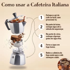 Tamanho aproximado da cafeteira: 21x17,5cm Peso aproximado: 515g Tipo de produto: cafeteira italiana para 9 xícaras na caixa Cor: prata Composição: alumínio Validade: indeterminada Marca: Não Informado Ean: 7891042629877