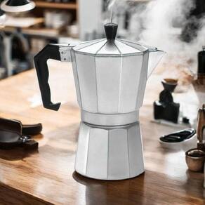 Prepare cafés deliciosos e aromáticos com a Cafeteira Italiana de Alumínio Polido 600ml.