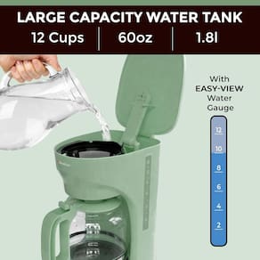 - Capacidade generosa e design durável: jarra de vidro com capacidade de 1,700 g, isso permite que você prepare uma grande quantidade de café até 12 xícaras cheias, ou simplesmente escolha 2 ou 4 de cada vez. Tem uma alça de fácil aderência para um despejo confortável e sem gotejamento. A cafeteira pode ser lavada na lava-louças é feita de vidro borossilicato não poroso de alta qualidade, que não absorve odores, enquanto sua excelente resistência ao calor manterá seu café mais quente por mais tempo.