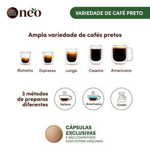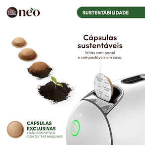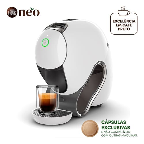 Nescafé Dolce Gusto NEO é a experiência de café expresso preto mais sustentável e conectada até então. Com cápsulas compostáveis feitas com papel e design focado em sustentabilidade, café preto da mais alta qualidade de origem responsável e cafeteira smart. Trazendo a experiência barista para sua casa, ela conta com 3 métodos de extração de café preto, o clássico espresso italiano, o Americano e o Coado conhecido também como Slow Brew. Ela também conta com a tecnologia SmartBrew®, que ajusta automaticamente diversos parâmetros como pressão, temperatura, tempo de fluxo e volume, adaptando o método de preparo e os parâmetros de extração a cada receita a partir do reconhecimento automático da cápsula. Assim você pode aproveitar as técnicas de uma cafeteria e a experiencia barista, para os amantes de café preto no conforto da sua casa.