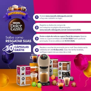 Revolucione sua rotina com o Sistema NESCAFÉ Dolce Gusto. Esta máquina de café multibebidas possibilita a preparação de cafés, cappuccinos, lattes, chocolates e chás em cápsulas, proporcionando qualidade de cafeteria em casa em mais de 50 opções de bebidas. Desfrute da conveniência e da modernidade das bebidas em cápsulas, uma solução prática para quem valoriza variedade e qualidade.