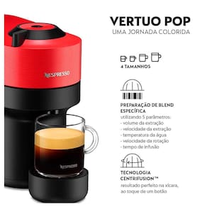 Destaques Sempre o mesmo resultado na xícara Café Nespresso feito na hora, com crema naturalmente formado e café encorpado. Alta Conveniência e Flexibilidade operação simples com um botão, ejeção automática da cápsula de café. Um Design Novo e Divertido Disponível em uma seleção de cores vibrantes. Características Tipo: Espresso Manual Tipo de Café: Cápsulas Capacidade do Reservatório: o,6 litros Pressão (Bars): 26,000 Quantidade de Xícaras: 08 Tipos de Bebidas: Café Bandeja para Resíduos Trava na Tampa Display Indicador do nível de água Reservatório Removível Desligamento Automático Luz Indicadora de Funcionamento Tempo de Preparo: 30 Segundos Especificações Técnicas Modelo: GCV2BR Cor: Vermelho Pimenta Potência: 1100W Voltagem: 110V / 220V (não é bivolt) EAN: 7630311562947 (110V) / 7630311562954 (220V) Garantia: 12 meses Dimensões e Peso Dimensões do produto sem embalagem (AxLxP): 250x136x420 mm Dimensões do produto com embalagem (AxLxP): 325x400x265 mm Peso do produto sem embalagem: 3,5 Kg Peso do produto com embalagem: 5,0 Kg Itens Inclusos 01 Máquina 01 Kit de boas vindas Agente Validador Produto possui certificação de segurança compulsória, certificado pela TUV 20.1796, organismo acreditado pela CGCRE do Inmetro.