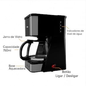 Capacidade de 750 ml, garantindo até 20 cafezinhos por vez, perfeita para reuniões ou famílias grandes.
