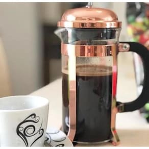 A cafeteira Prensa Francesa Rose Gold / Cobre é fácil de usar. Basta ferver a água e escaldar a cafeteira, adicionar o café moído recomendamos a utilização de grãos de moagem média , adicionar água apenas para encaixar o pó e mexer por 15 segundos. Depois, é só acrescentar o restante da água, tampar com o êmbolo levantado e esperar 4 minutos para uma perfeita infusão. Por fim, abaixe o êmbolo lentamente até que o pó chegue no fundo.