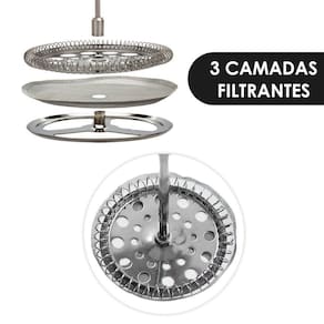 A Cafeteira Prensa Francesa é fácil de usar e conta com um eficiente sistema de filtragem que impede a passagem do pó de café, garantindo uma bebida saborosa, sem sedimentos indesejados.