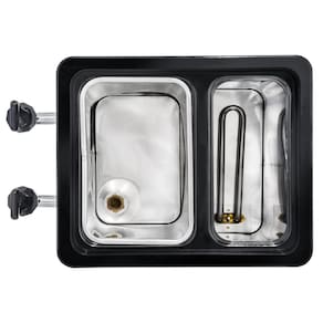 Estrutura fabricada toda em aço inox escovado; tampa superior e pingadeira em alumínio com pintura eletrostática; bojo em aço inox; resistência elétrica em aço inox 304 tubular; termostato capilar com sensor de imersão; fiação elétrica com revestimento em silicone resistente à 300C.