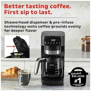 PROCESSO DE PREPARAÇÃO DE PRÉ INFUSÃO Embebe suavemente a borra antes de preparar para produzir uma xícara de café mais profunda, aromática e saborosa PREPARAÇÃO RÁPIDA Prepara 12 xícaras de seu café moído favorito em menos de 10 minutos PERSONALIZE A CADA SERVIÇO Escolha entre 2 intensidades diferentes para a bebida clássica ou ousada perfeita. Você poderá desfrutar de força e sabor ao mesmo tempo GRANDE RESERVATÓRIO DE ÁGUA REMOVÍVEL Prepare mais, encha menos com o reservatório removível de 60 onças. Também pode ser lavado na lava louças, portanto, não é mais necessário descalcificar os reservatórios de água CONVENIÊNCIA PROGRAMÁVEL O timer de 24 horas permite que você defina seu café à noite para uma xícara quente pronta pela manhã AQUECIMENTO AJUSTÁVEL A placa de aquecimento mantém o café quente por até 4 horas com três configurações de temperatura para escolher ÁGUA FILTRADA Filtro de carbono integrado que elimina as impurezas, garantindo um sabor cada vez mais rico BATCH BREW PEQUENO Prepare convenientemente 1 a 4 xícaras para máxima flexibilidade, menos desperdício e sabor completo XÍCARA RÁPIDA Não há necessidade de esperar até que a infusão termine para pegar uma xícara DESCUBRA RECEITAS INCRÍVEIS DE CAFÉ Inclui o aplicativo Instant Brands Connect, onde você pode encontrar novas receitas para criar cafés favoritos rápidos e preparar refeições deliciosas, disponível para iOS e Android Marca: Não Informado