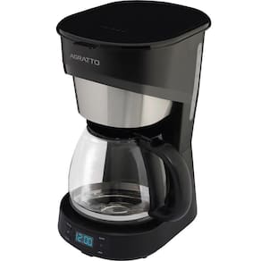 Cafeteira Programável Agratto Aroma Preta 127v Modelo: ACFT01I-01 A Cafeteira Programável Agratto Aroma é um modelo que traz mais sabor para o seu dia a dia. Com painel digital programável, é possível preparar até 38 xícaras de café na hora exata e na temperatura ideal, com possibilidade de programação de até 24 horas antes.