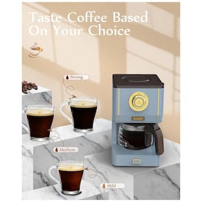 Esta cafeteira oferece intensidade de preparo personalizável, incluindo opções Suave, Média e Forte, para adaptar seu café ao seu gosto. Com seu design de cabeça de pulverização, a cafeteira garante uma distribuição uniforme da água sobre os grãos de café, melhorando a suavidade da bebida e capturando a essência dos grãos frescos.