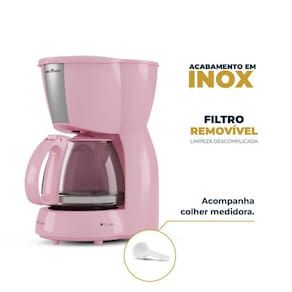 A Cafeteira Rosa BCF15 possui também um design moderno com pequenos detalhes em inox, perfeita para quem dar aquele charme especial na cozinha.