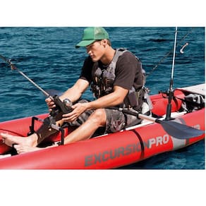 CAIAQUE INFLÁVEL EXCURSION PRO Características:O novo Caiaque Excursion Pro K2 om ele você navega com segurança e conforto.Excursion Pro K2 é rápido de inflar e compacto para transporte. Material com 3 camadas.Quando inflado tem capacidade para 2 pessoas ou até 180KG.Especificações:- Marca: INTEX- Referência: 68309- Material: Construção de 3 camadas de PVC 0,75mm Molecular - SuperTough.- Medidas do caiaque inflado: 3,84m comprimento x 94cm largura x 46cm altura- Capacidade: 2 Pessoas ou 180Kg- Dois suportes de vara de pesca removíveis.- Suporte adicional para acessórios.Itens inclusos: um caiaque, 2 remos, um inflador e bolsa de transporte. Apoios de pés ajustáveis.IMAGENS MERAMENTE ILUSTRATIVAS