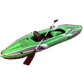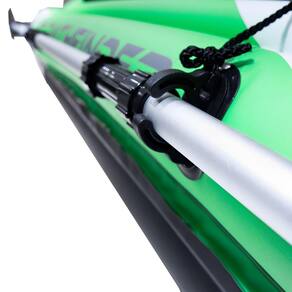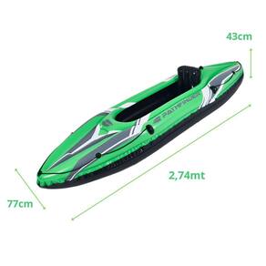 Especificações: - Dimensões: 274 x 77 x 43 cm - Suporta até 80kg - Acessórios inclusos: assento removível, bomba, remo, apoio para pés, remendo para reparo e régua de plástico 10cm