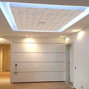 O Forro Teto Leve® Calacatta estilo marmorizado une sofisticação e praticidade, com acabamento amadeirado profundo e superfície lisa. Seu sistema de encaixe macho/fêmea proporciona instalação ágil, limpa e econômica.
