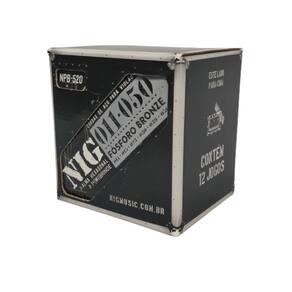 Um Encordoamento desenvolvido e aprovado por técnicos, engenheiros e músicos. Através de equipamentos de última geração e contando com as melhores matérias primas do mercado mundial, a NIG faz da fabricação de Cordas um processo extremamente preciso e de padrão internacional. - Bordões: Encapados com Bronze 85/15 sobre alma hexagonal sextavado de Aço estanhado e polido. - Cordas Primas lisas : Em Aço carbono estanhado e polido. - Medidas 010 - 050 - Encapadas com Bronze 85/15 - Alma hexagonal - Com bolinha - Tensão média - 1 mi extra. - 1 palheta. Marca: Não Informado