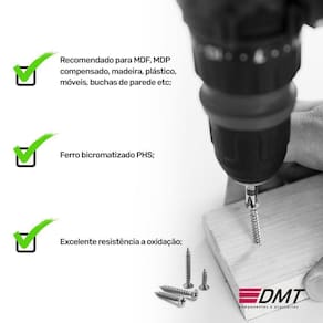 Indicado para Uso: Madeira, MDP, MDF, Compensado, Móveis, Plástico, Buchas de Parede