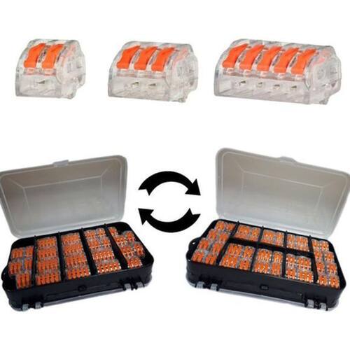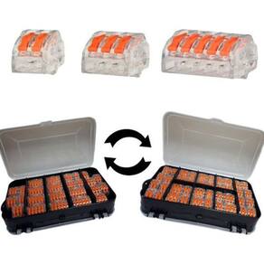 Caixa 65 conector elétrico borne emenda tipo 222 2,3,5 fios maravilhoso kit em estojo dupla face com 65 conectores de emenda rápida com alavancas